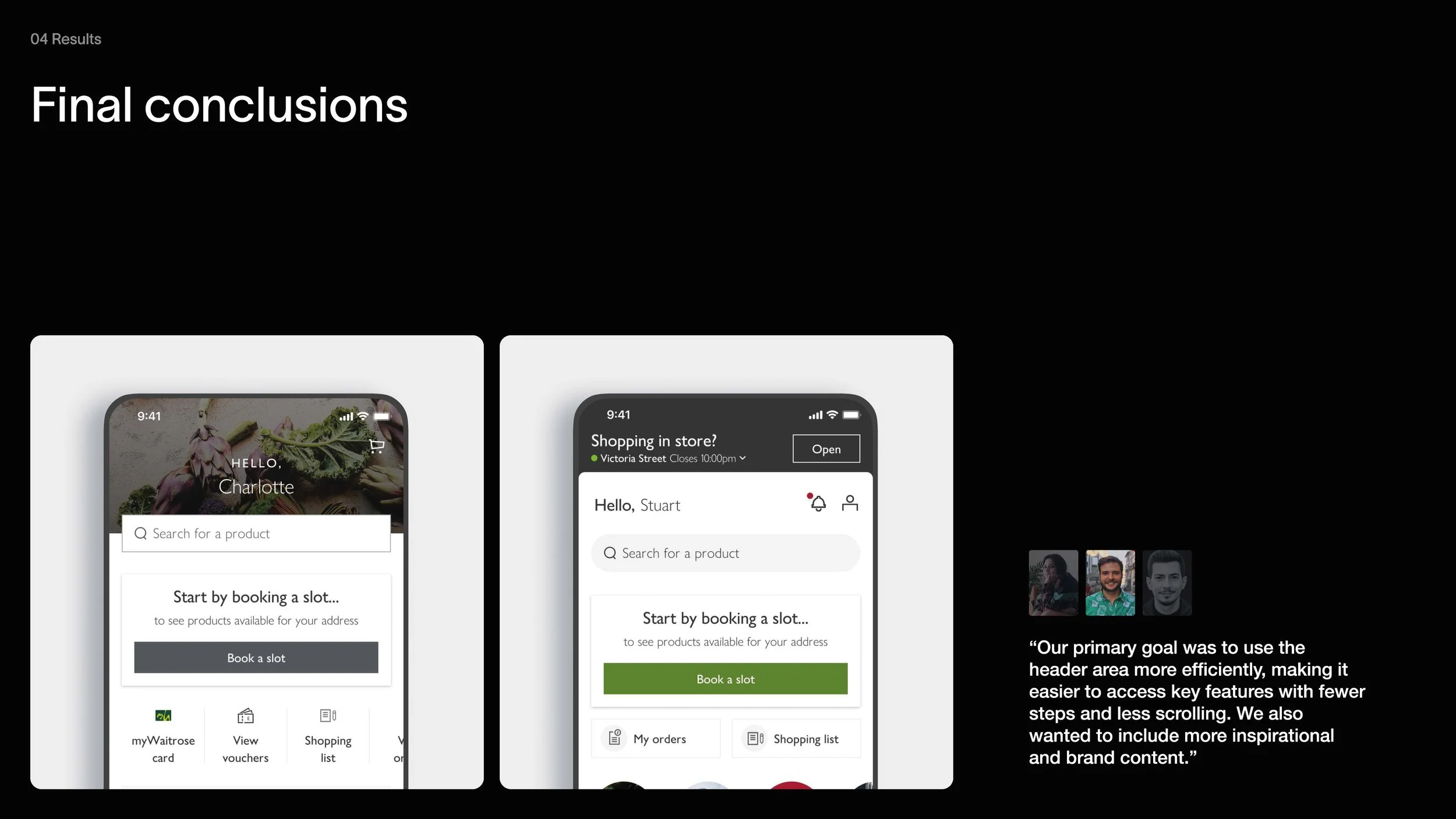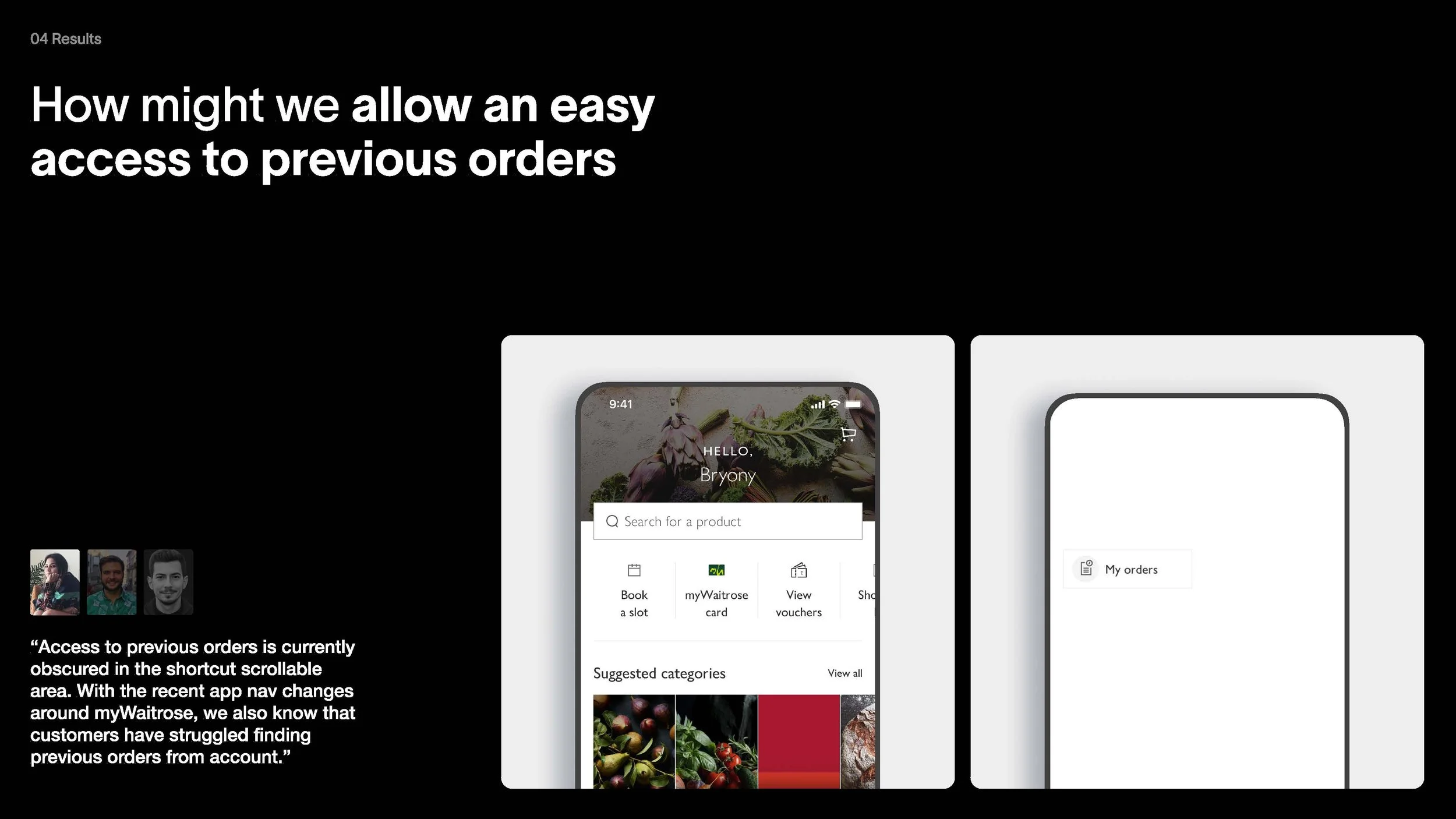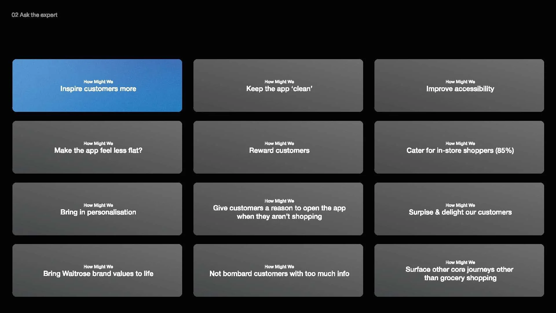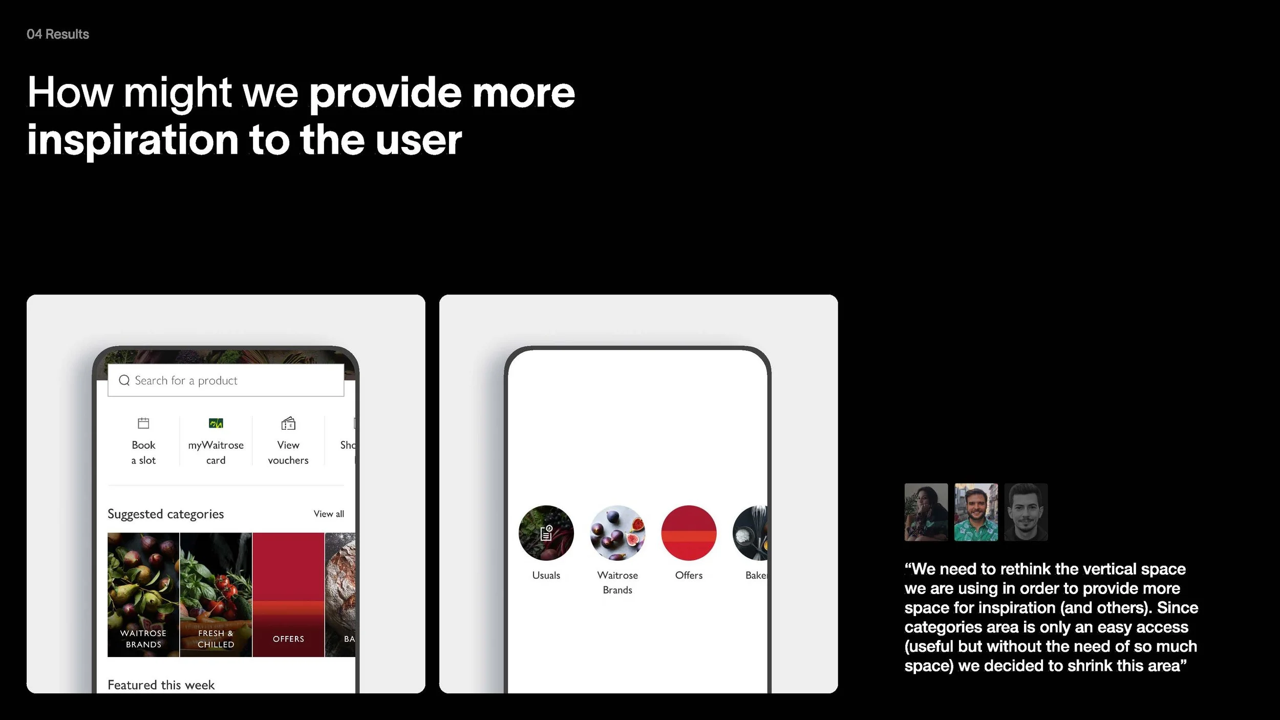 In April 2024 I organised and took part in a design hackathon for the Waitrose app home screen, upon completion of the workshop I presented the ideas back to senior leadership.
